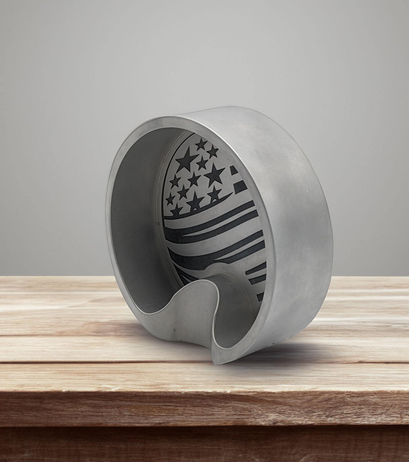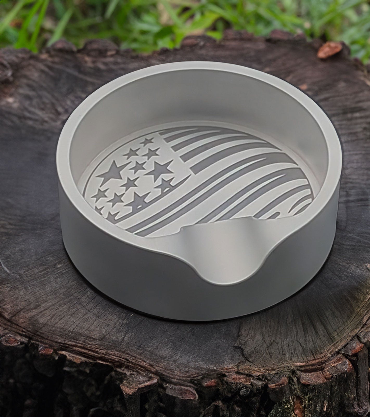 The ultimate gift for cigar enthusiasts with our Premium Custom Aluminum CNC Milled Ashtray, exclusively designed and crafted in Phoenix, Arizona. The ashtray boasts an original, 100% unique design, meticulously crafted from locally sourced aluminum. Tailor-made to meet your exact specifications, we offer personalized engraving options for both the trough and sole of the ashtray, allowing you to add custom graphics, meaningful phrases, or initials. Lacking creative ideas? We can assist, ensuring your custom ashtray is as unique as your taste. Ideal for cigar aficionados seeking a bespoke smoking accessory, this made-to-order, engraved aluminum ashtray represents the pinnacle of craftsmanship and local artistry.