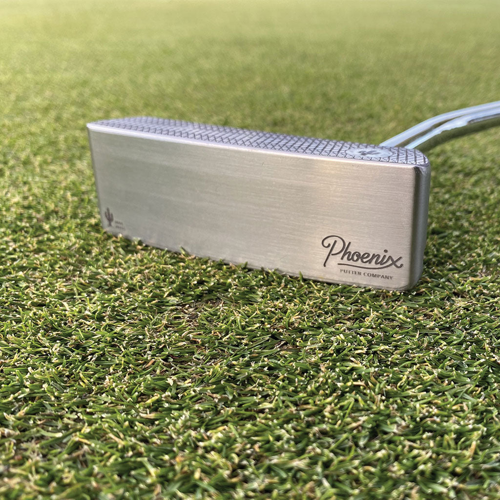 The much anticipated Saguaro Putter is now available for customization! This face-balanced putter is unlike anything else. An immaculate soft touch when putting makes this putter a must-have in your bag. With the putter head weighing in at a hefty 365 grams, this putter has a recognizable weight distribution throughout the putter.